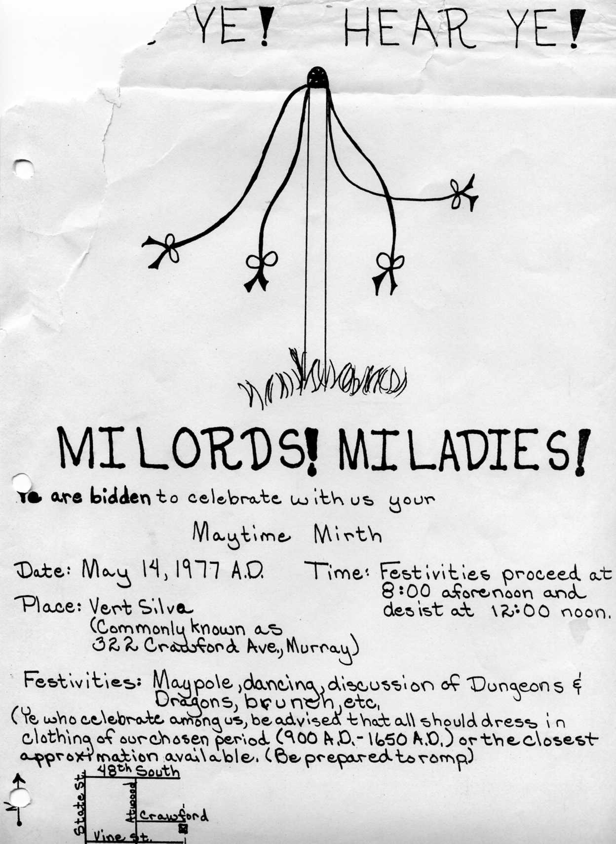 2nd Revel, May 77, flier Published June 28, 2016 at 1248 × 1710 in am Mor Salann Fasach’s Second Revel (May 1977) Flyer for second revel of incipient shire of am Mor Salann Fasach, May A.S. XII Continue reading →